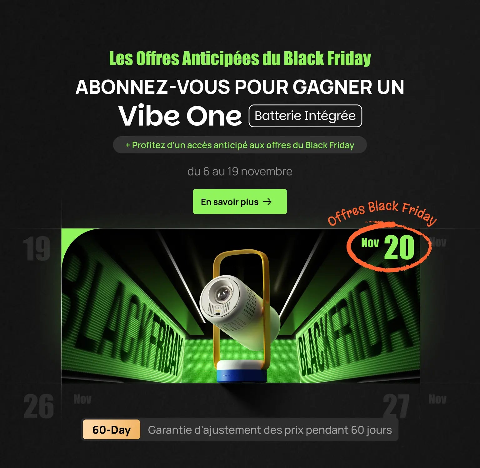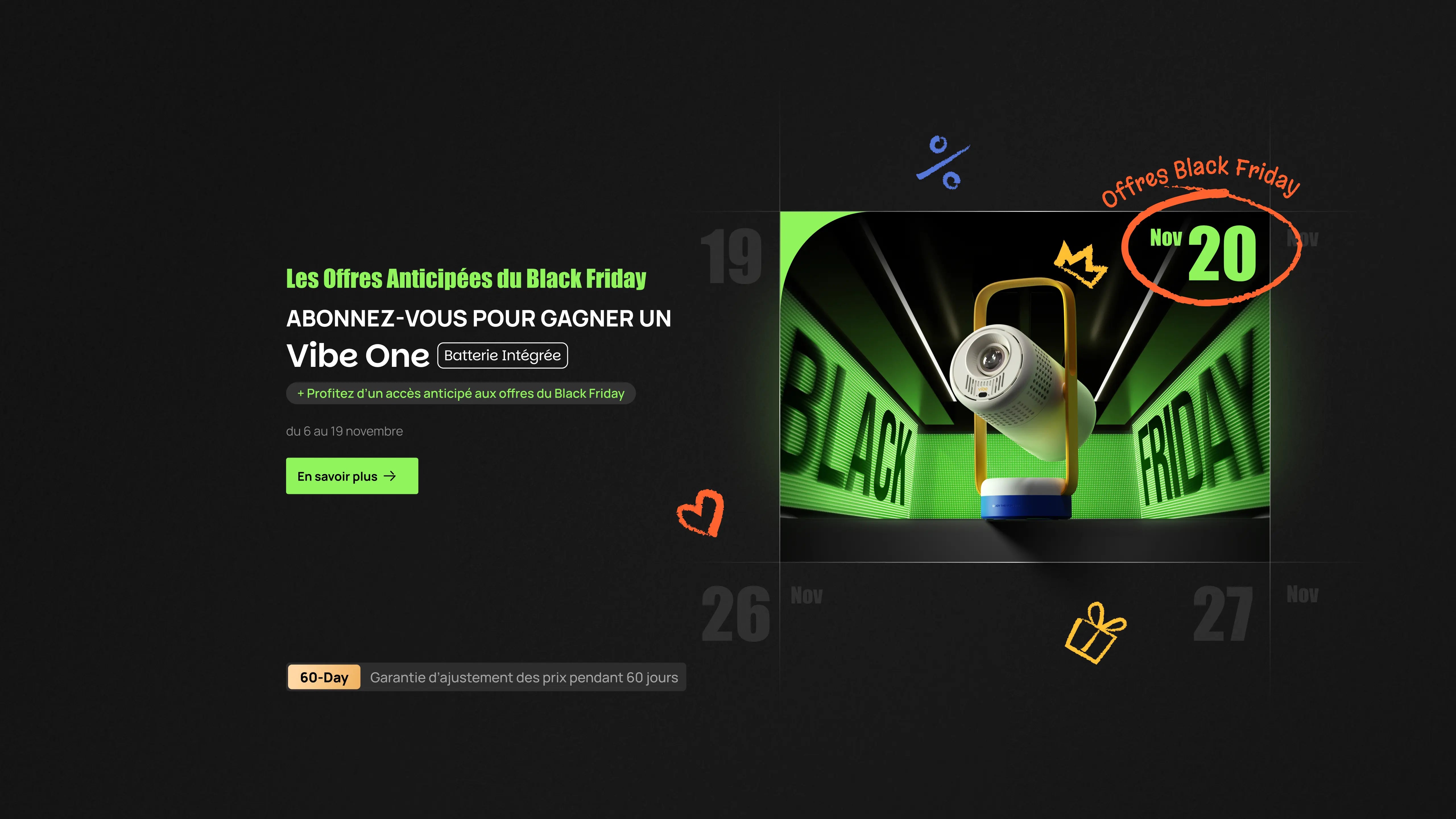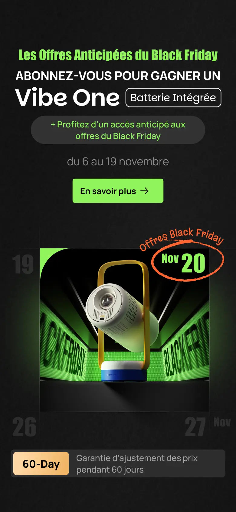Inscrivez-vous maintenant pour avoir une chance de GAGNER un Vibe One et bénéficier d’un accès anticipé exclusif aux offres du Black Friday !