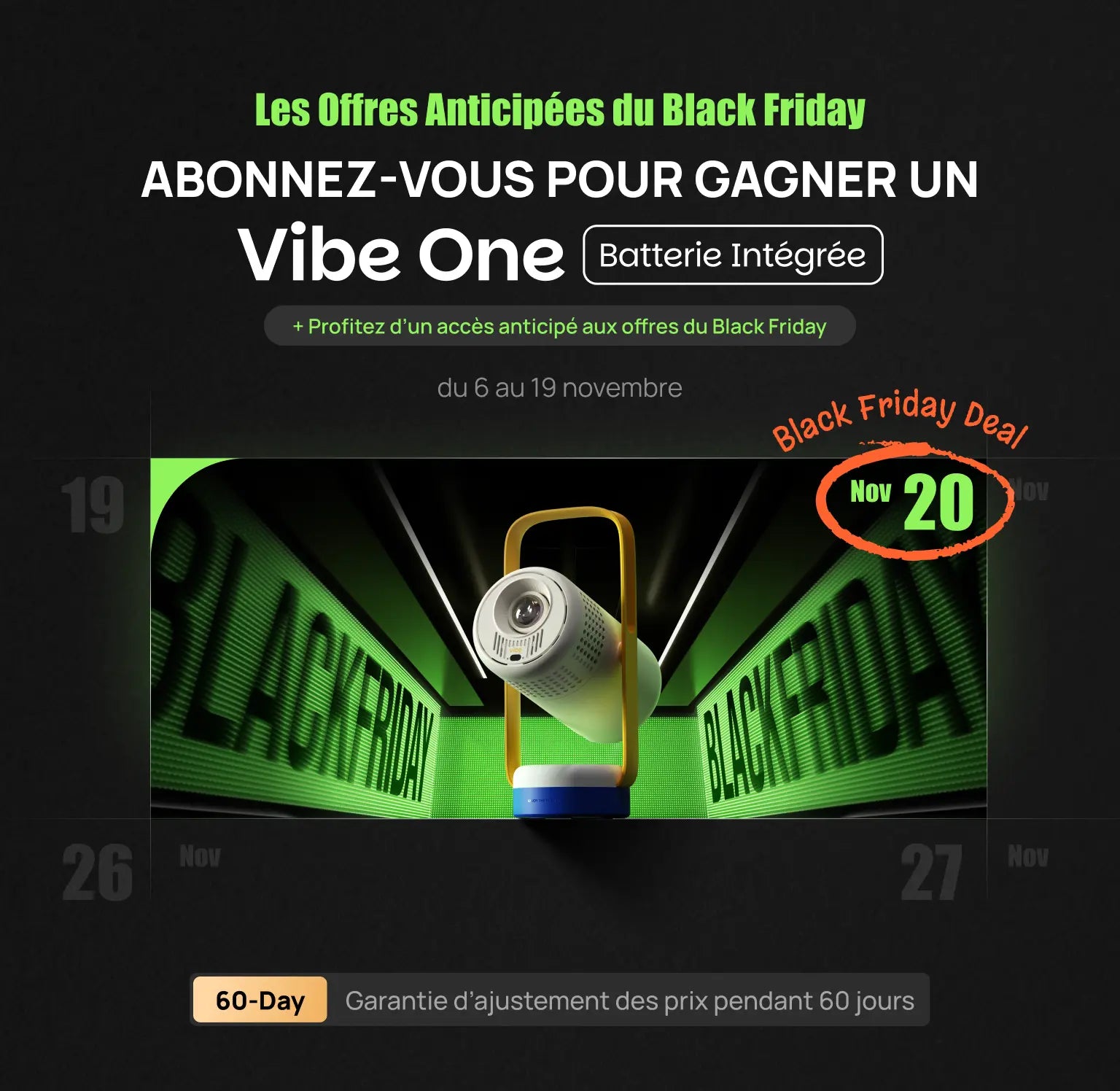 Inscrivez-vous maintenant pour avoir une chance de GAGNER un Vibe One (Batterie Intégrée) et bénéficier d’un accès anticipé exclusif aux offres du Black Friday !