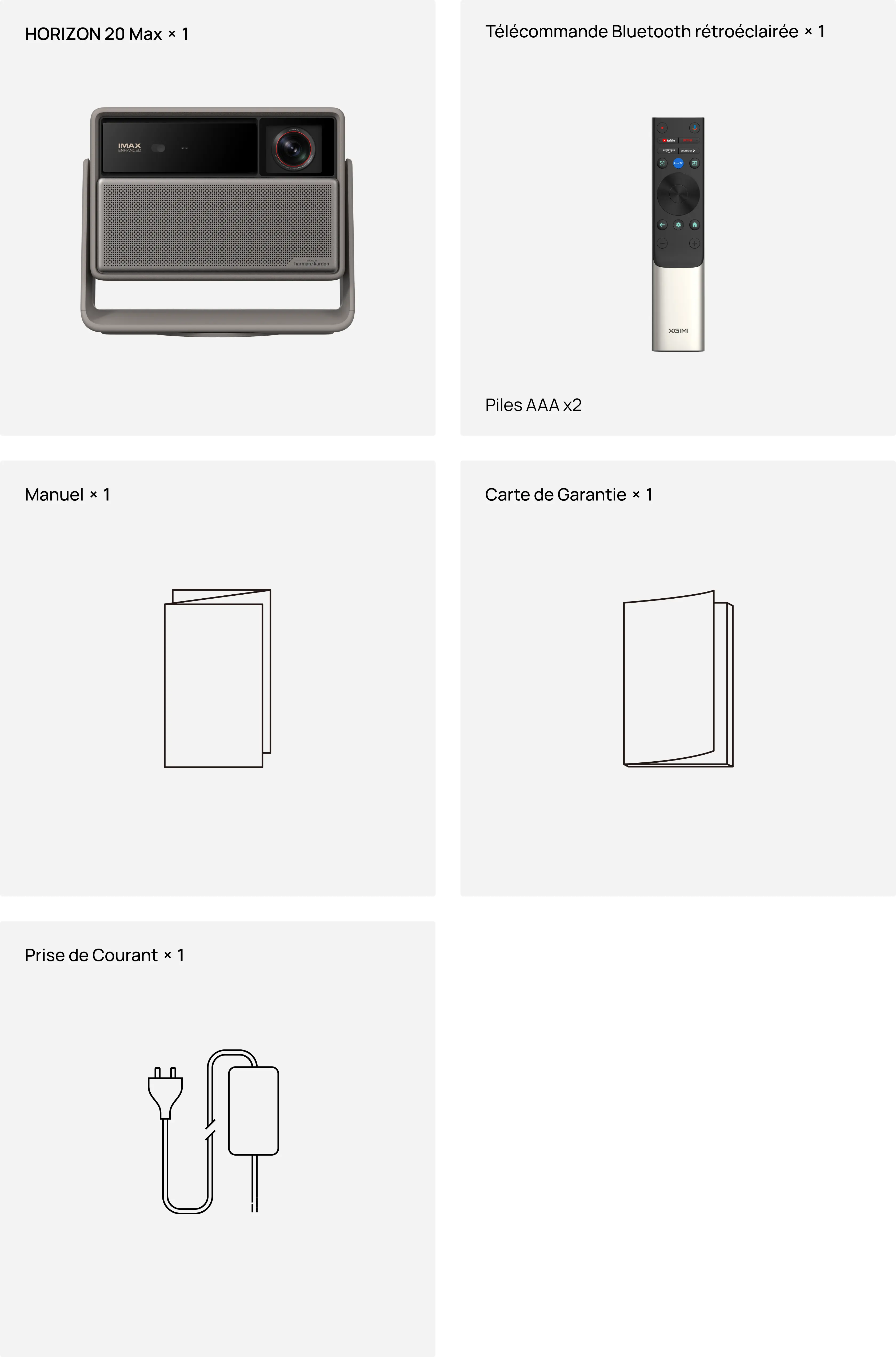 * XGIMI s'efforce, au moment de la publication, d'assurer l'exactitude des informations sur les produits qu'elle fournit. En raison de changements ultérieurs concernant les lots de produits, la production et les facteurs d'approvisionnement, XGIMI peut être amené à apporter des modifications et des ajustements aux textes et aux images afin qu'ils correspondent aux performances, spécifications, indices et composants du produit réel. Les informations sur les produits sont sujettes à de tels changements et ajustements sans préavis.