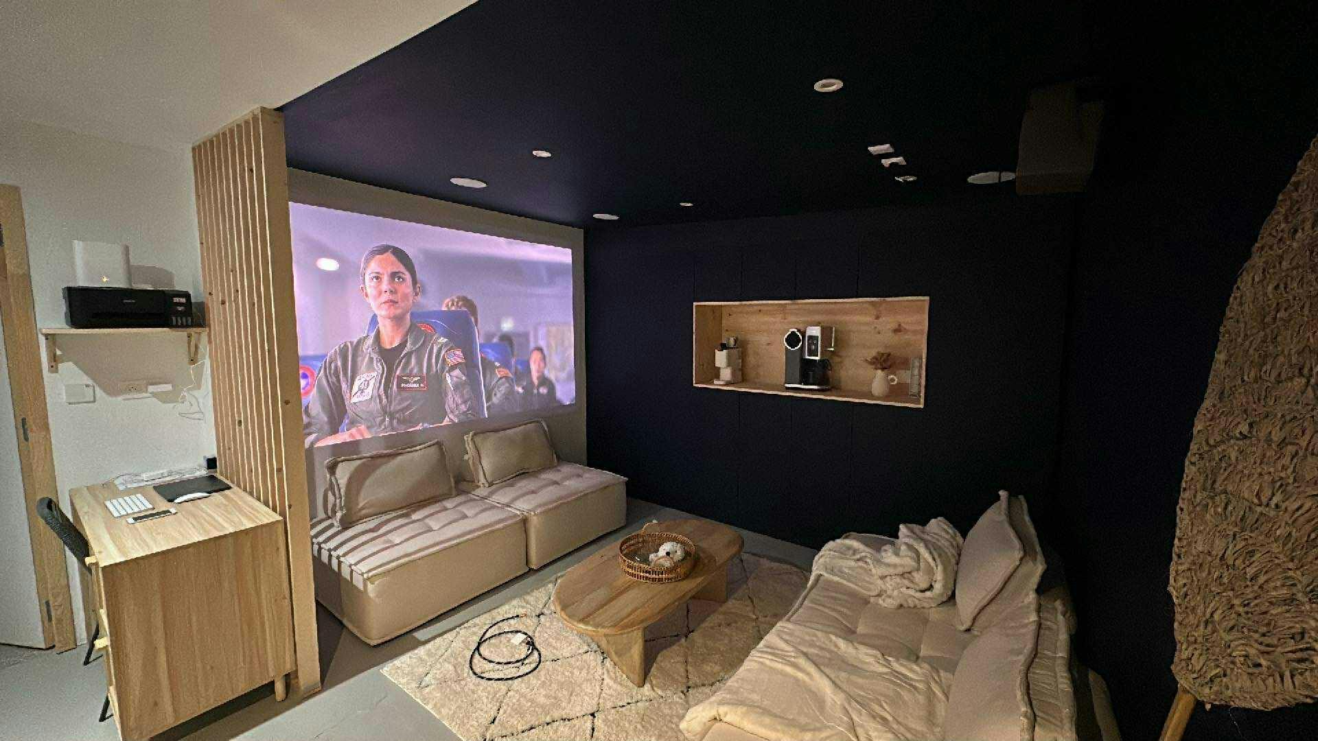 8. Pour une expérience de visionnage optimale nous vous recommandons d'utiliser une taille de projection comprise entre 150 et 300 cm. Dépasser cette taille peut affecter la qualité du contenu projeté. La qualité de l'image peut varier en fonction des conditions d'utilisation et de l'environnement.