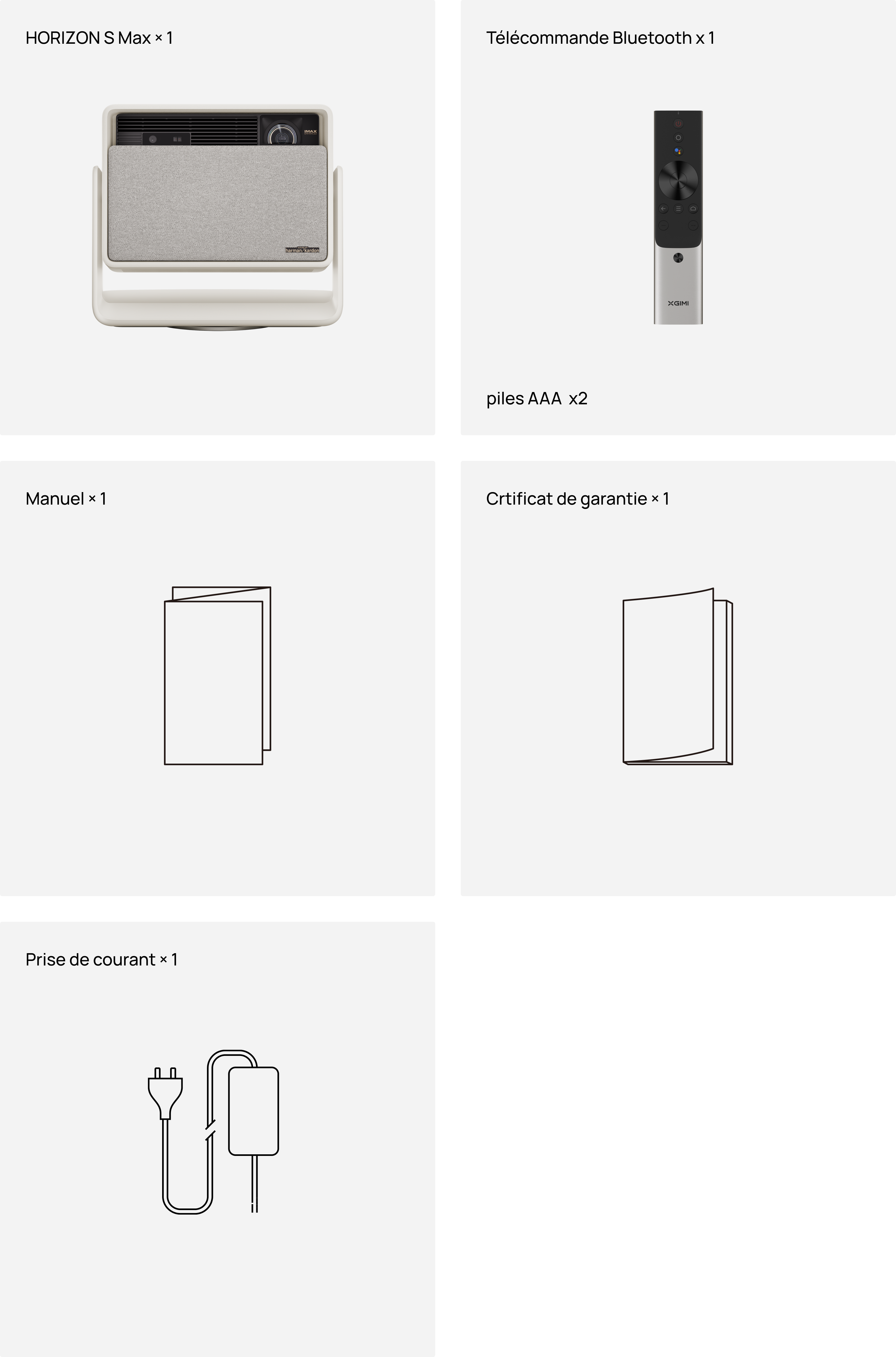- Support flexible intégré : HORIZON S Max vous permet d'ajuster facilement l'angle de projection à votre convenance, que ce soit sur un mur ou au plafond. Inutile d'ajouter des supports ou fixations supplémentaires, tout est inclus pour obtenir l'angle de projection idéal.